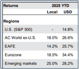 - International equities continue to be the star performers of 2025!