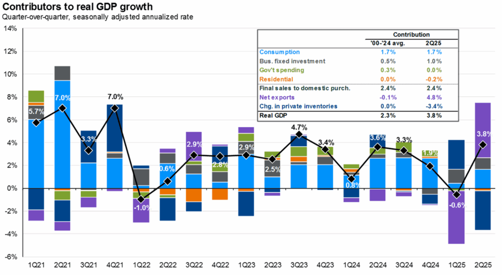 - Economic Growth (GDP) grew aggressively in Q2 {+3.8%} after declining by -0.5% in Q1.