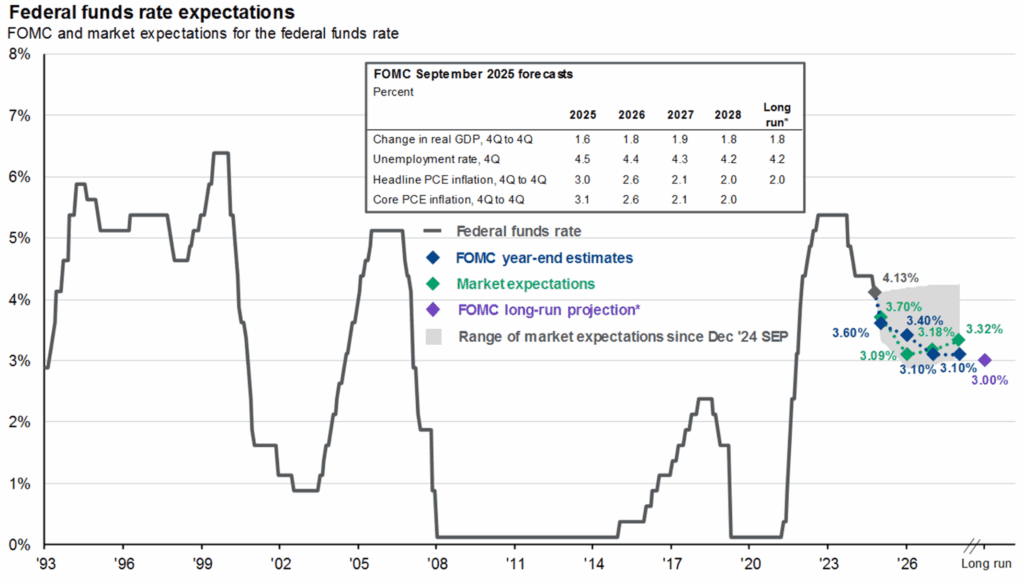 - Market forecasters expect an additional two cuts in 2025 and another two rate cuts in 2026