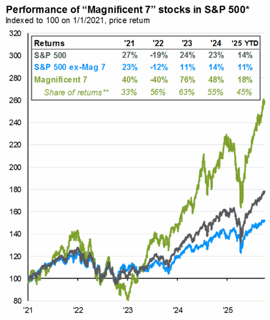 - Mag 7 stocks continue to power the S&P 500 behind the strength of global AI capital investment